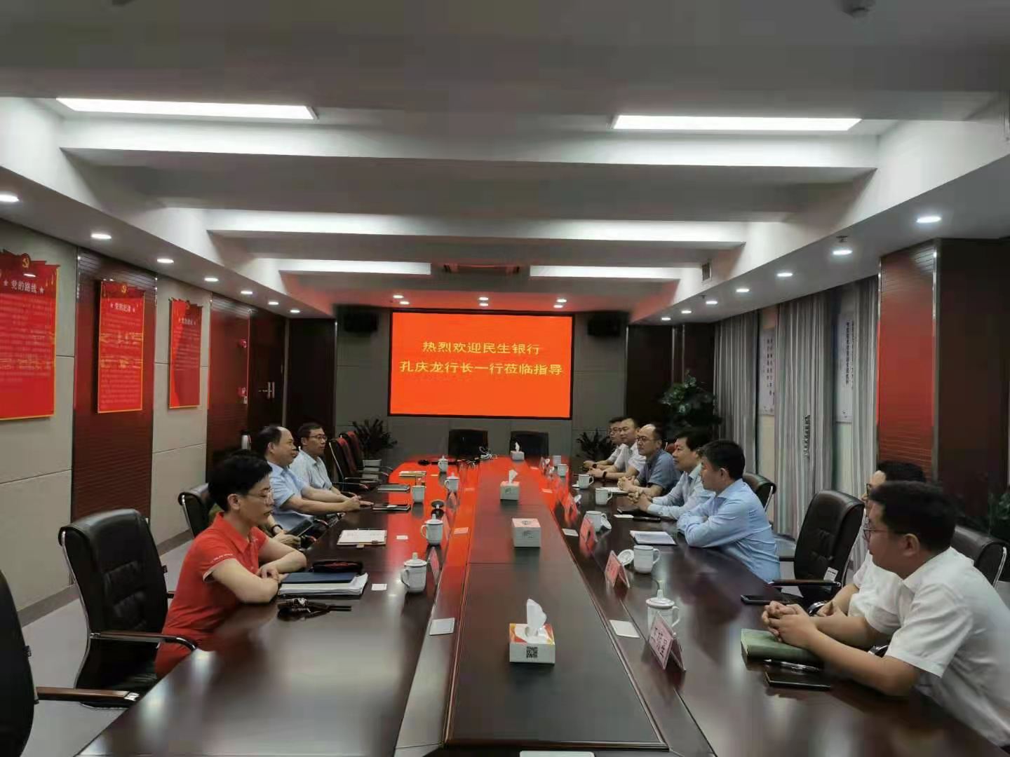 2021年8月20日下午,民生銀行合肥分行黨委書記、行長孔慶龍一行蒞臨市城投公司調(diào)研,公司黨委書記、董事長周學(xué)保會見了孔慶龍行長一行。