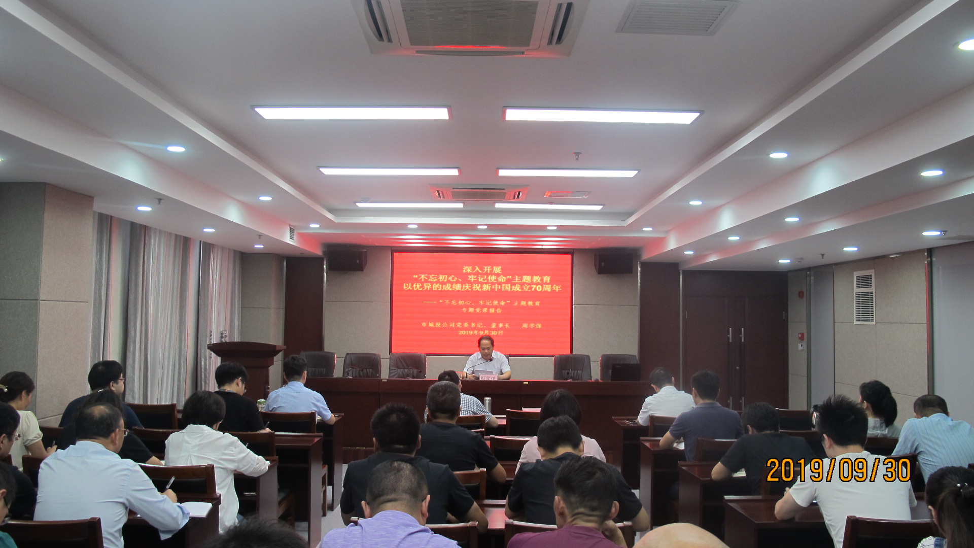為隆重慶祝我們偉大祖國成立70周年、進一步交流探討“不忘初心、牢記使命”主題教育工作,市城投公司黨委書記、董事長周學保同志為公司全體員工上以“深入開展‘不忘初心、牢記使命’主題教育,以優異的成績慶祝新中國成立70周年”為主題的專...