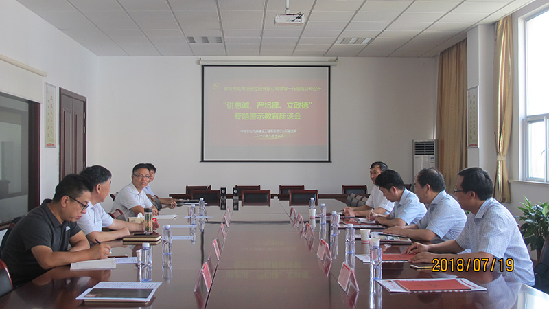 四是開展一次基層走訪座談。7月19日,公司黨委班子開展一次以“走基層聽心聲、凈思想鑄忠誠”為主題的“講忠誠、嚴紀律、立政德”專題警示教育基層走訪座談活動。公司黨委班子深入公司結對非公企業聯系點安徽元鼎建設工程有限公司和寶龍工程機械貿易公司,聽取企業黨建工作開展情況和黨員先鋒模范作用發揮情況,同時,公司黨委書記周學保同志圍繞堅定黨員理想信念、強化忠誠意識,在各個領域中如何發揮黨員帶頭作用與大家進行了交流探討,聽取基層一線黨員的意見建議,將“講忠誠、嚴紀律、立政德”專題警示教育引向深入。
